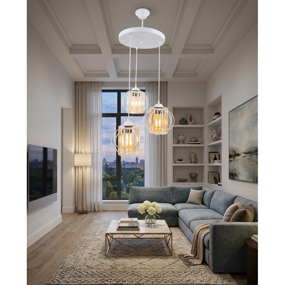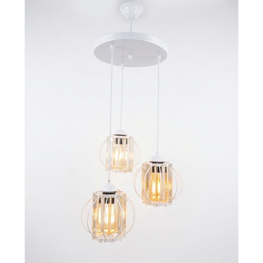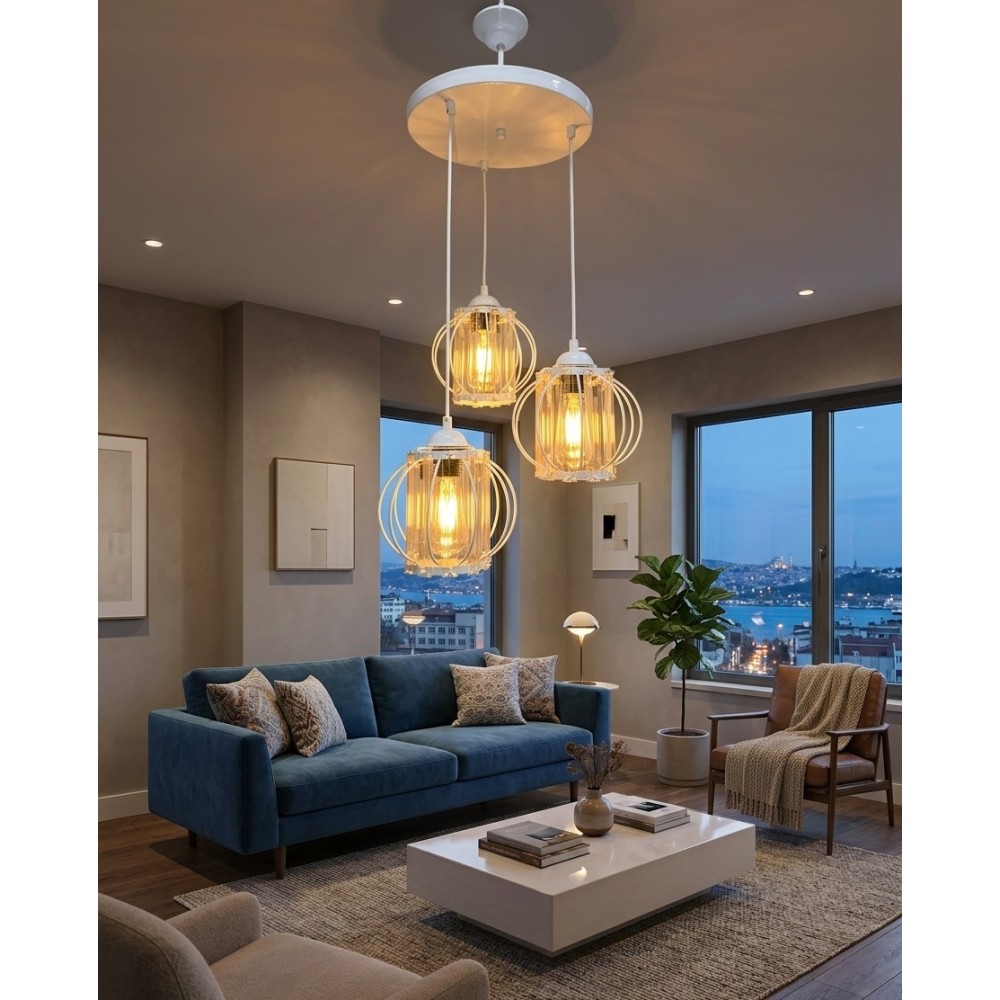 Modern Kristal Detaylı 3’lü Sarkıt Avize - Beyaz