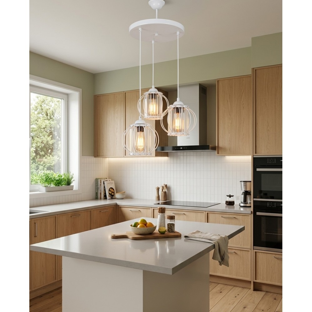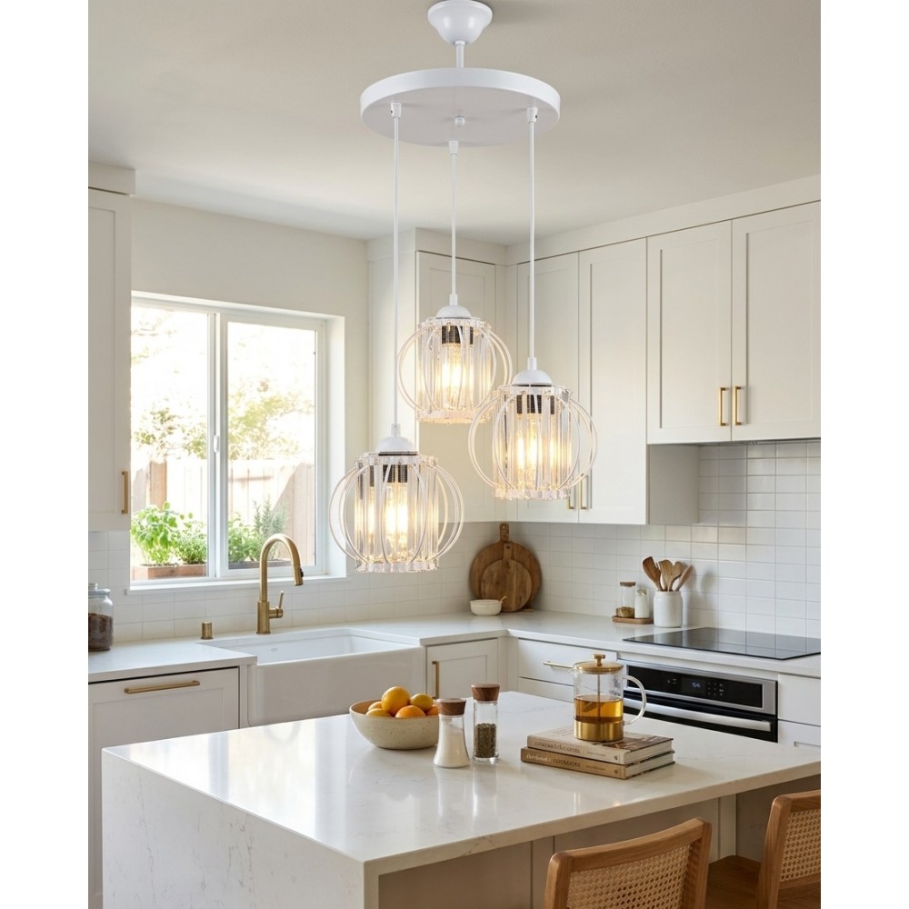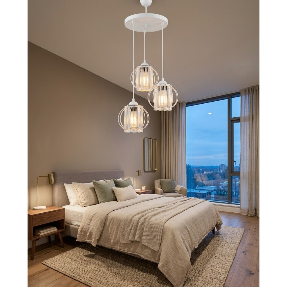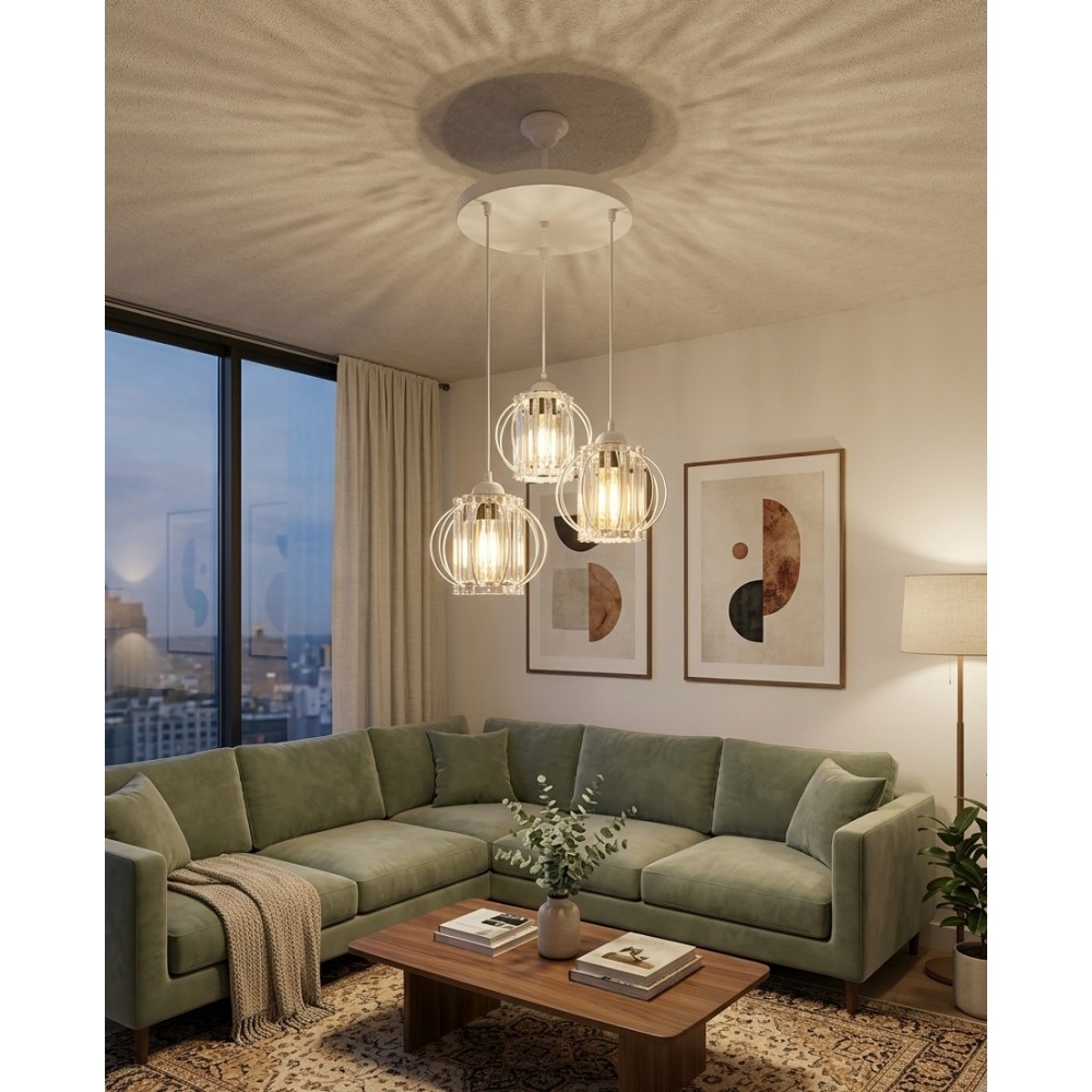 Modern Kristal Detaylı 3’lü Sarkıt Avize - Beyaz