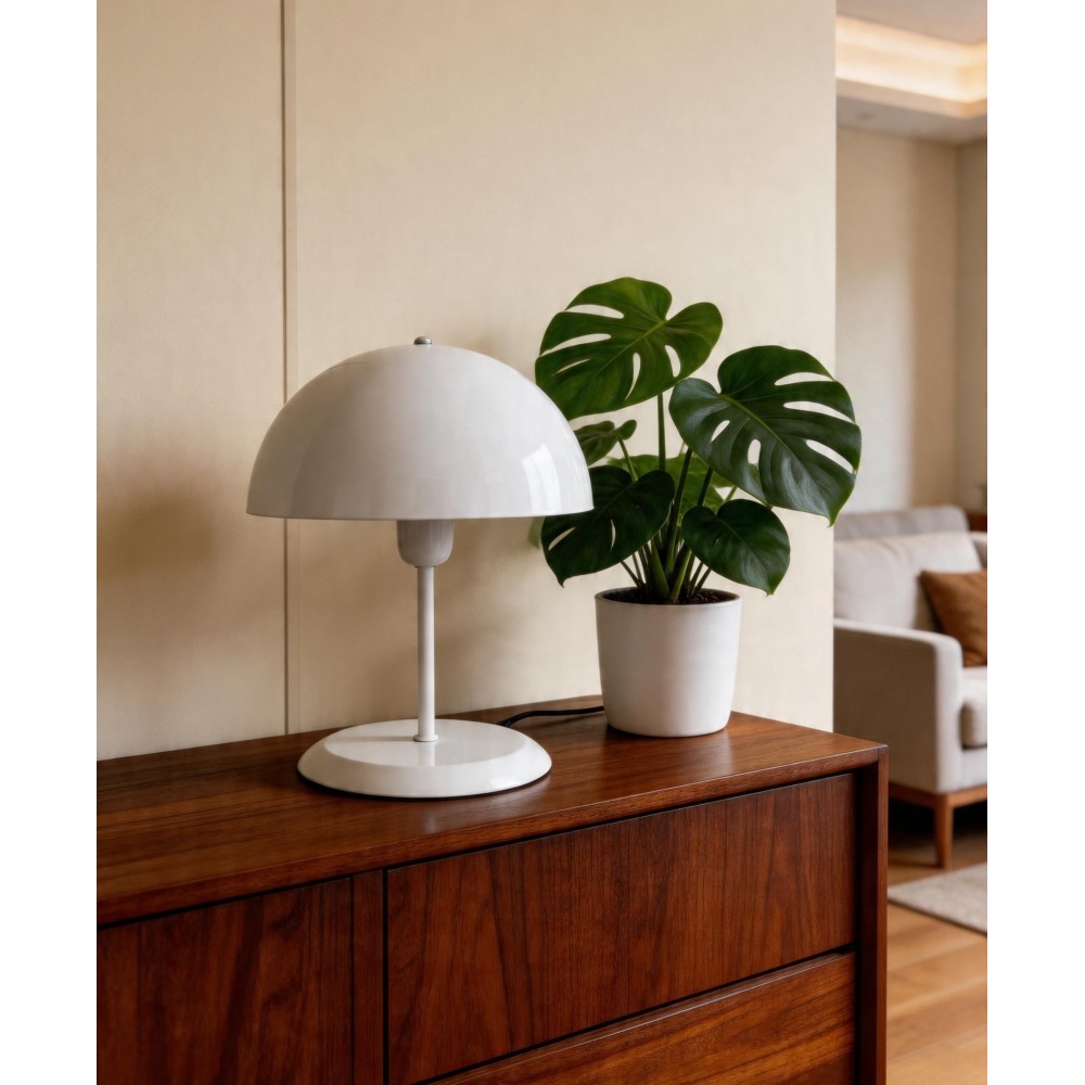 Retro-Modern Şıklık: Beyaz Metal Mantar Masa Lambası