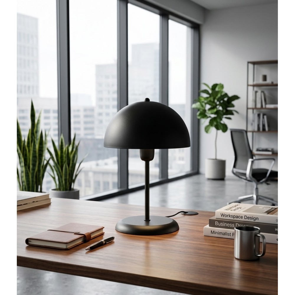 Retro-Modern Şıklık: Siyah Metal Mantar Masa Lambası
